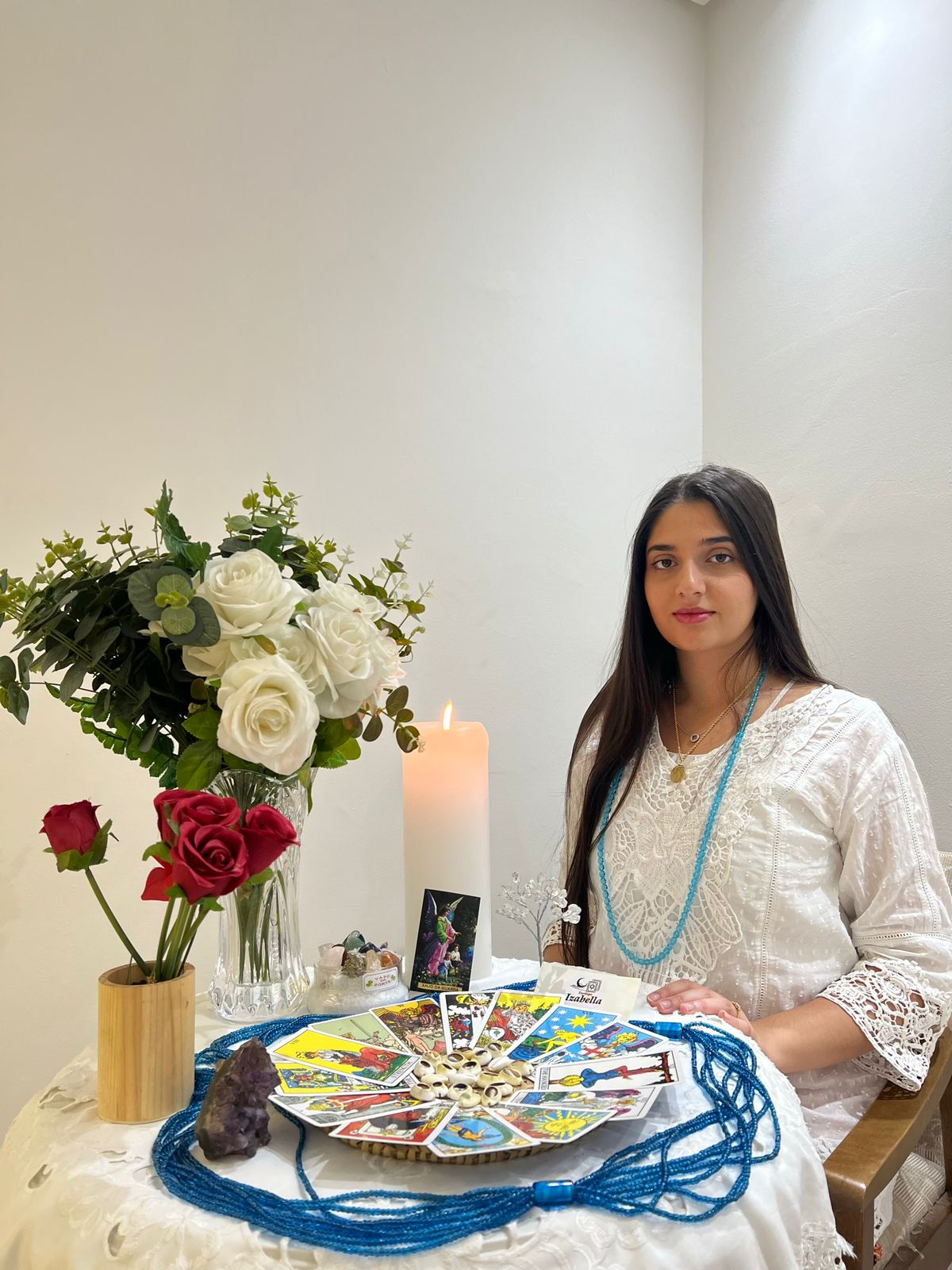 Sou Izabella, taróloga sensitiva e especialista em rezas e benzimentos, com mais de 13 anos de experiência, formada pela Federação Brasileira de Umbanda e Candomblé. Aqui, conecto-me com as forças da Mesa Branca, sempre trabalhando para o bem, guiada pelas entidades de luz e energias superiores.